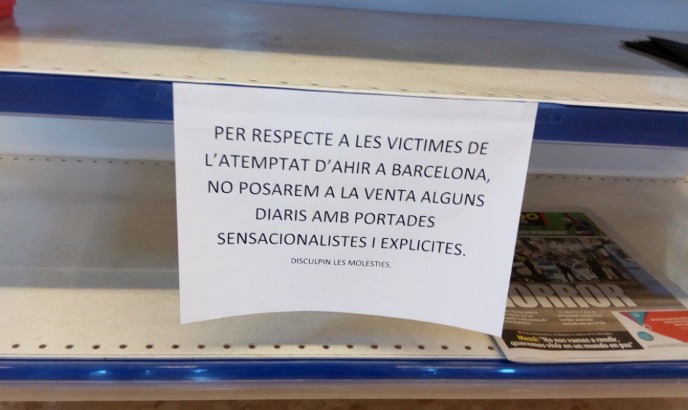De mal en peor, ocultar muertos bajo la hipócrita razón de RESPETO, y afirmaciones categóricas del Ministro del Interior sobre el fin de la célula terrorista en catalana. No asombre que el lunes empiecen a justificar de nuevo a los cabrones asesinos. Cinco minutos después ya soltaban el famoso #UnTaxistaMarroquí